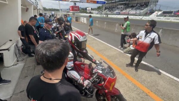 キャブセッティングを微調整しながら、ピット内はまるで80年代にタイムスリップしたようだ。